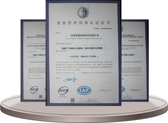 濟(jì)南厚德耐磨材料有限公司成立于2000年,原名(濟(jì)南東漢鐵藝有限公司)坐落于山東章丘,毗鄰309國道。注冊金2000萬元,年產(chǎn)6萬噸各類棒磨機(jī)鋼棒和球磨機(jī)鋼球,鋼球出口到三十多個(gè)國家和地區(qū),磨棒出口到十多個(gè)國家和地區(qū)。公司擁有先進(jìn)的生產(chǎn)設(shè)備,經(jīng)驗(yàn)豐富的技術(shù)人員,產(chǎn)品各項(xiàng)性能指標(biāo)均達(dá)到先進(jìn)水平。公司已榮獲ISO9001-2000國際質(zhì)量體系認(rèn)證、IOS14001-2004國際環(huán)境體系認(rèn)證等榮譽(yù)...